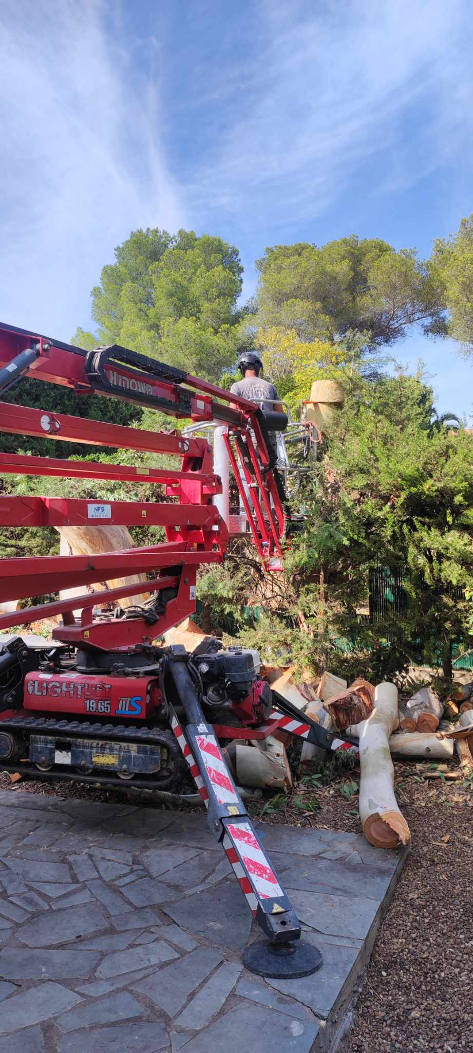 La nacelle permet de travailler jusqu’à 19 mètres de hauteur. Il s’agit ainsi d’un excellent outil pour couper les branches des arbres, quelle que soit leur hauteur, aux abords des lignes électriques et téléphoniques ou surplombant des habitations. Dans le cas d’une opération d’élagage ou de taille des arbres, lorsque les arbres sont peu espacés et ne permettent pas l’utilisation d’un camion nacelle, cette solution est la plus viable.